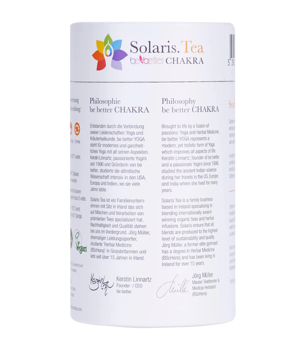 Dette er en sofistikert Rooibos-urteblanding som inneholder dekadent kakaoskall og ekte bourbonvanilje for å glede sansene dine og skape en unik teopplevelse. Sakralchakraet er vårt lidenskaps- og nytelsessenter, som oppmuntrer til selvutfoldelse og glede, og fokuserer på våre følelser og kreativitet. Ved å rette fokus mot det andre chakraet opplever vi livene våre gjennom følelser og sansninger, og kan utnytte vår evne til å sanse og forstå andre. Denne spesielle økologiske teen vil hjelpe deg med å utnytte din emosjonelle og kreative side, så vel som din forbindelse til andre.