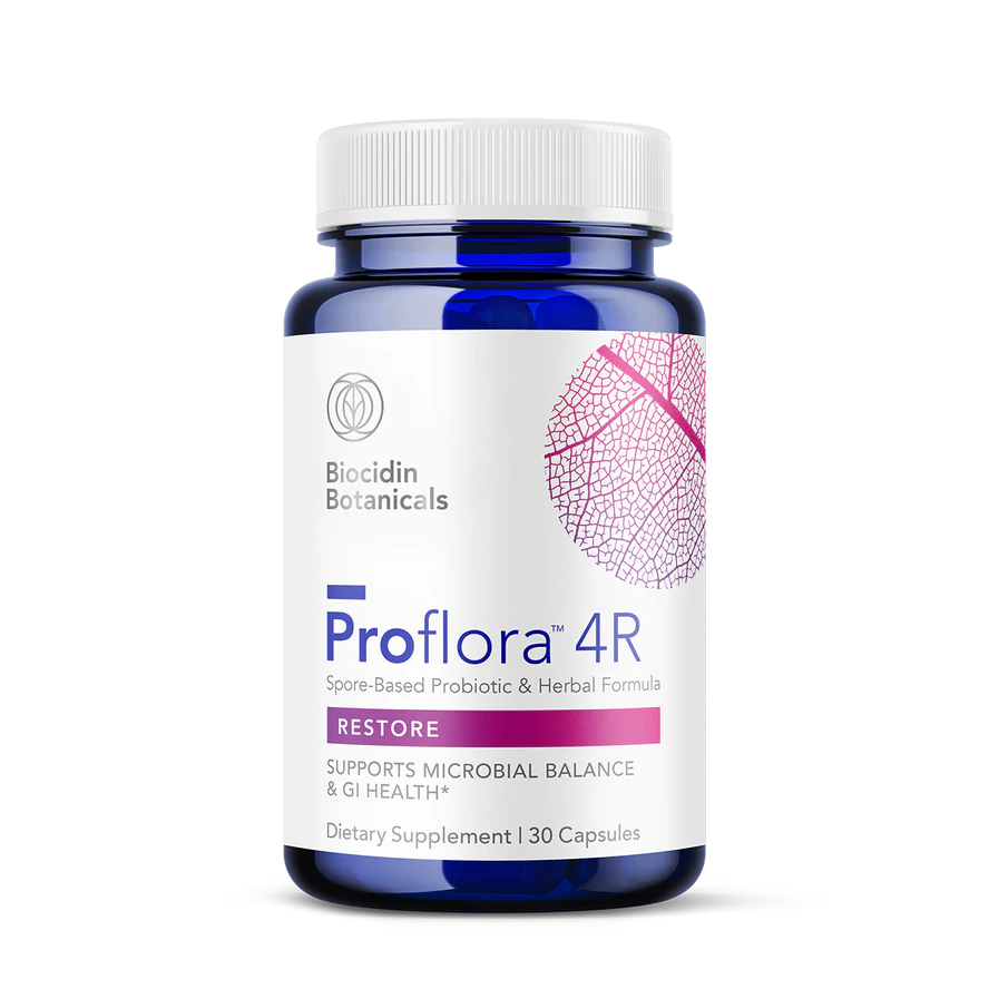 ProFlora 4 R er et kosttilskudd for tarmfloraen. Dette er en blanding av gode sporedannende bakterier som finnes naturlig i tarmen, og også i sunn, levende jord, samt quercetin, aloe vera og marshmallowrot.