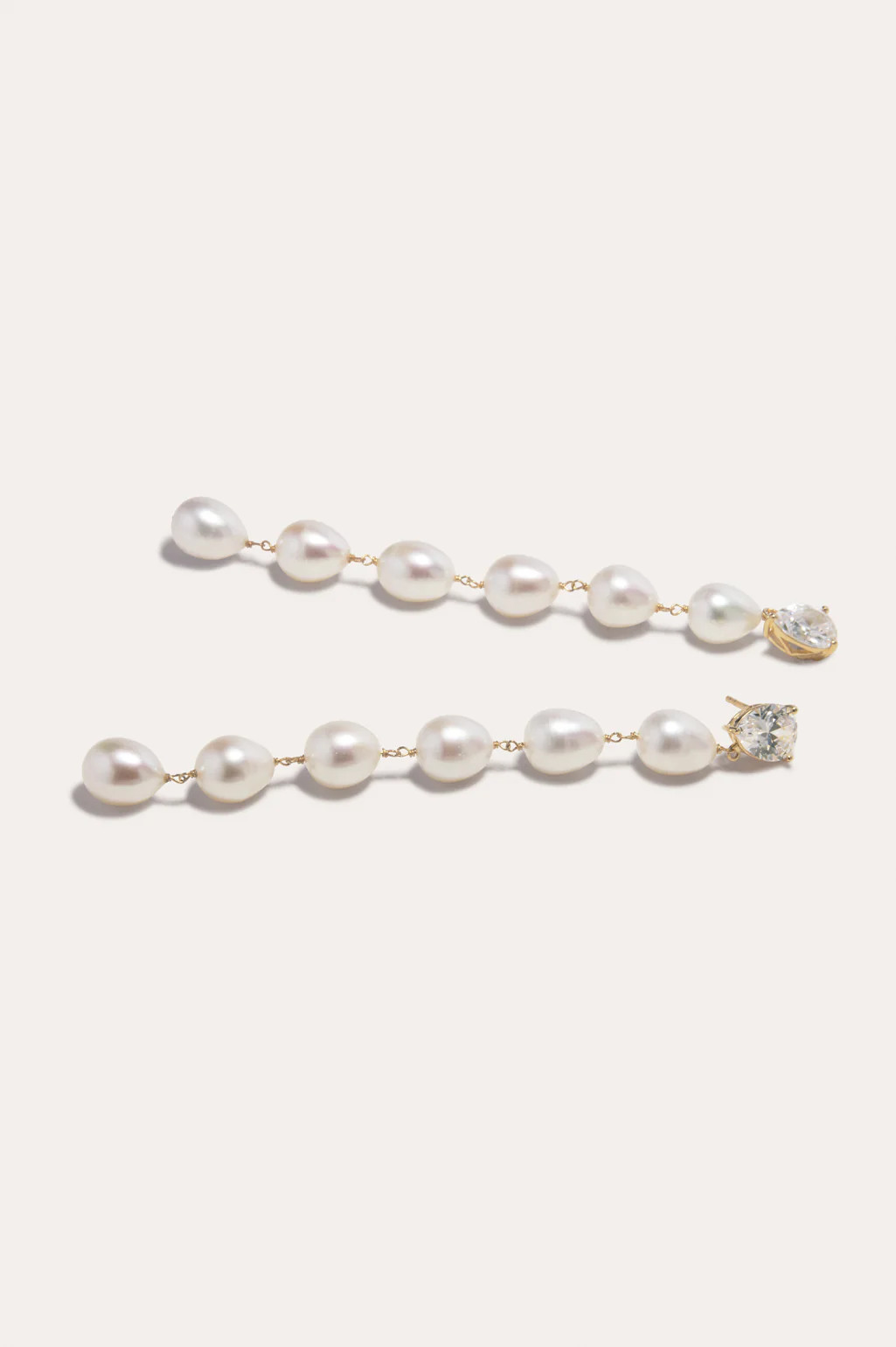 Øredobber av ferskvannsperler, zirkonium edelstener og gull vermeil.