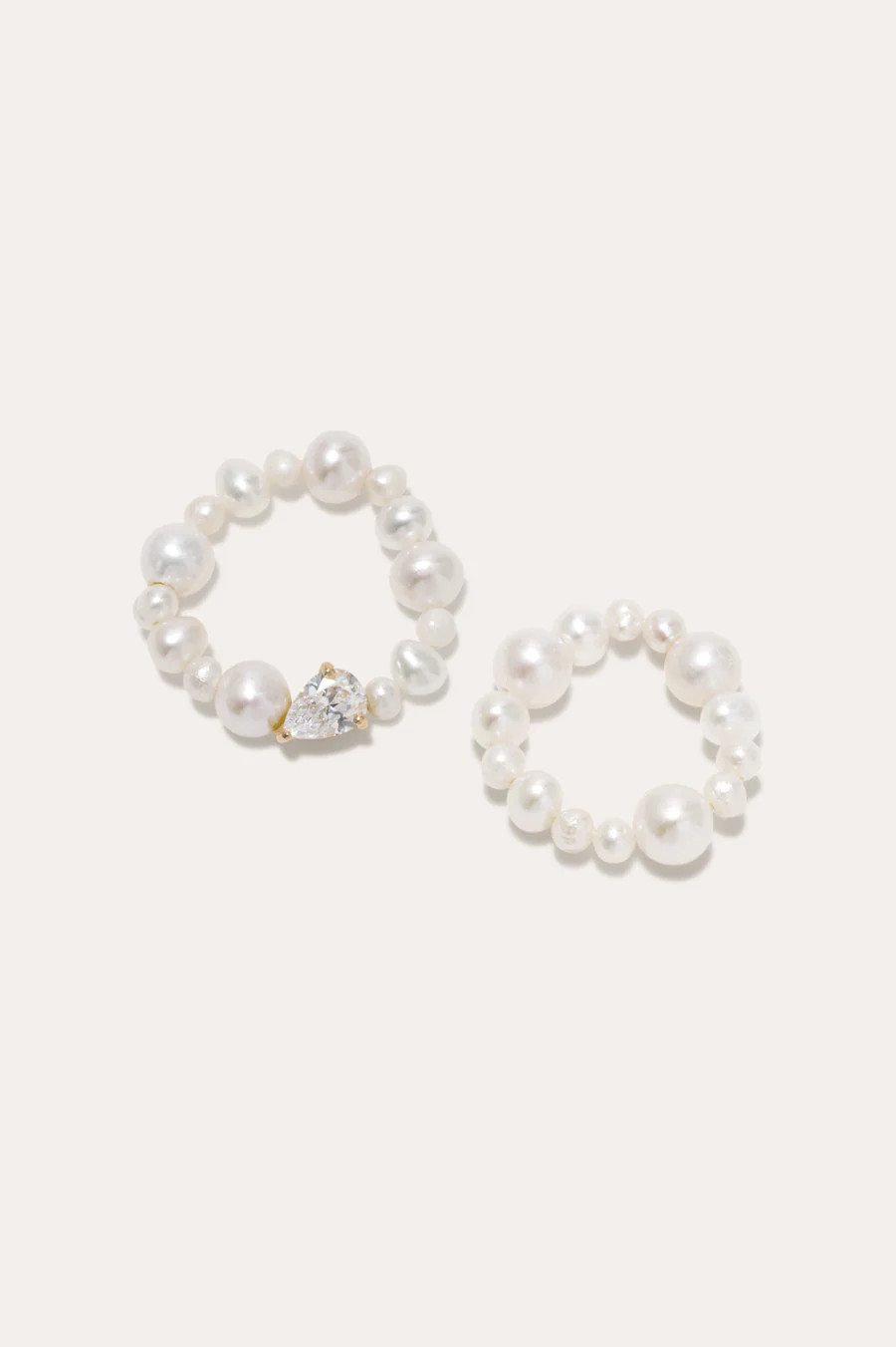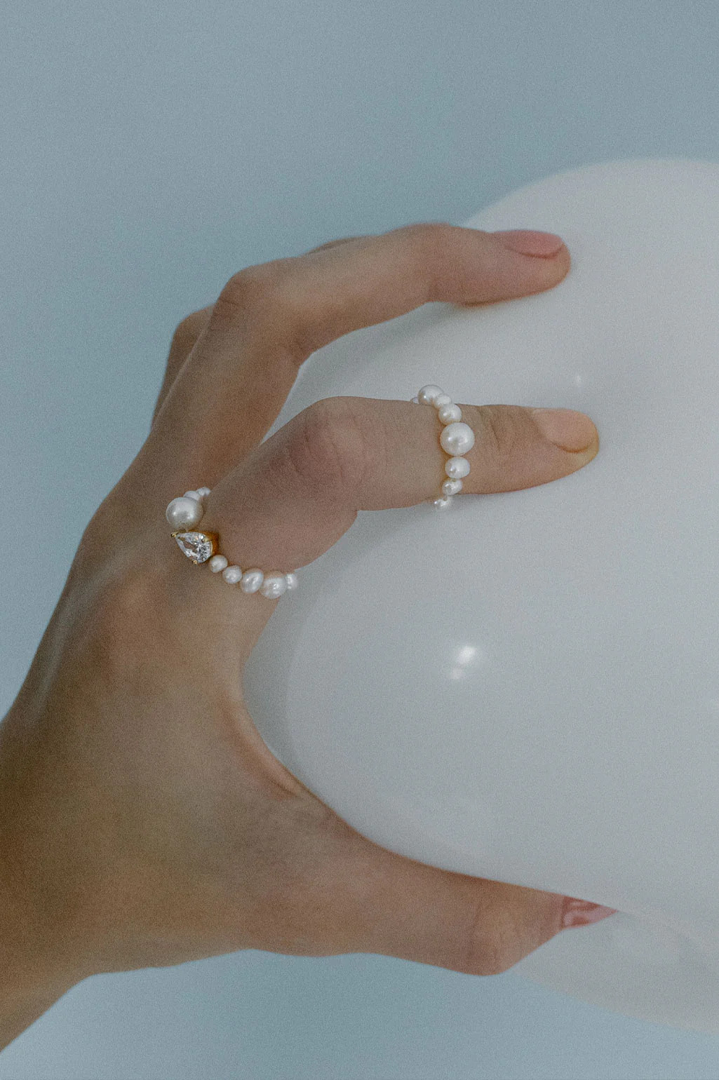 Ring av ferskvannsperler, zirkonium edelstener og gull vermeil.